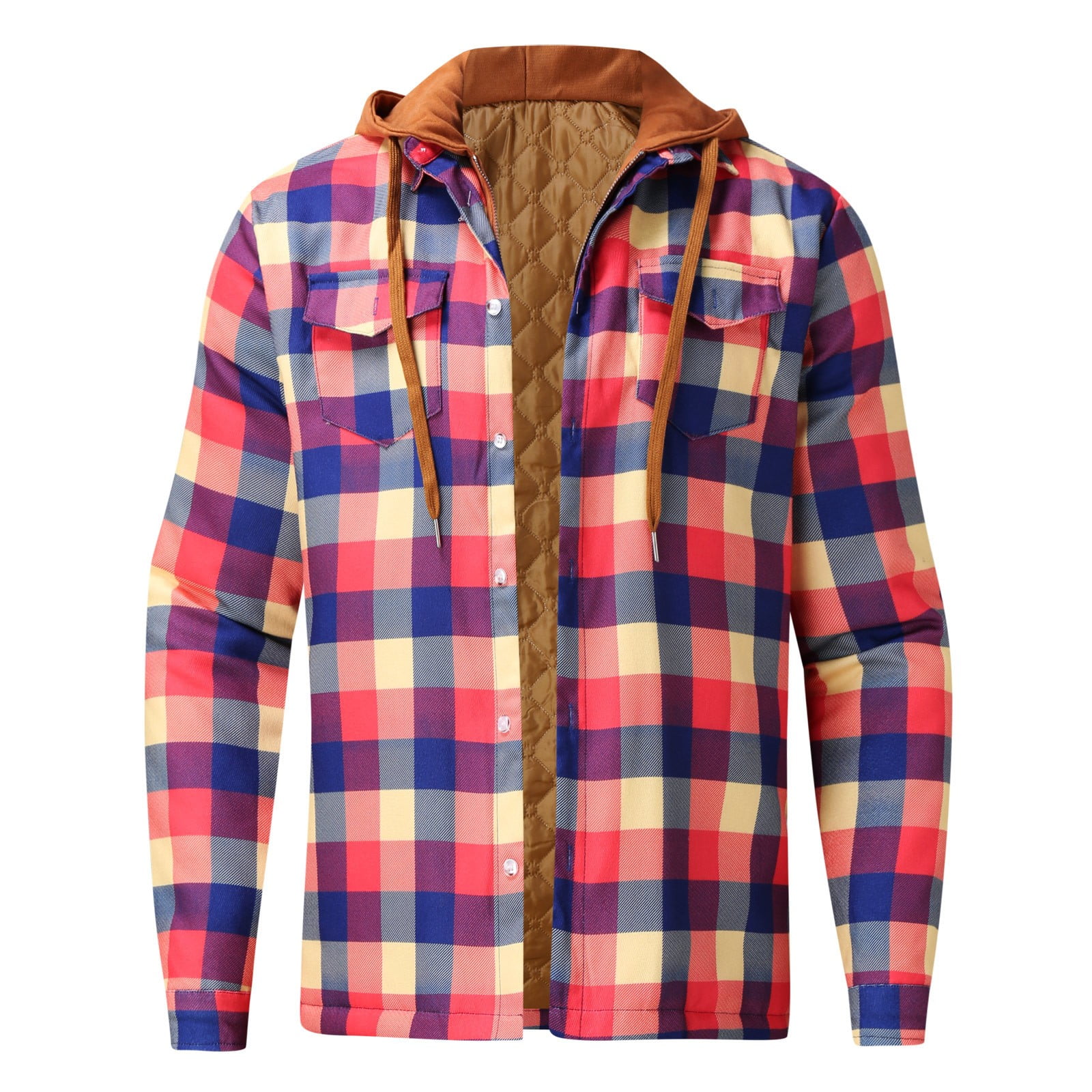 Nsendm Men S Casual Autumn Colorful Plaid Print Hooded Zipper Pocket Long Sleeve Shirt Patchwork Mens Jackets Casual Coat Multicolor Large Walmart Com