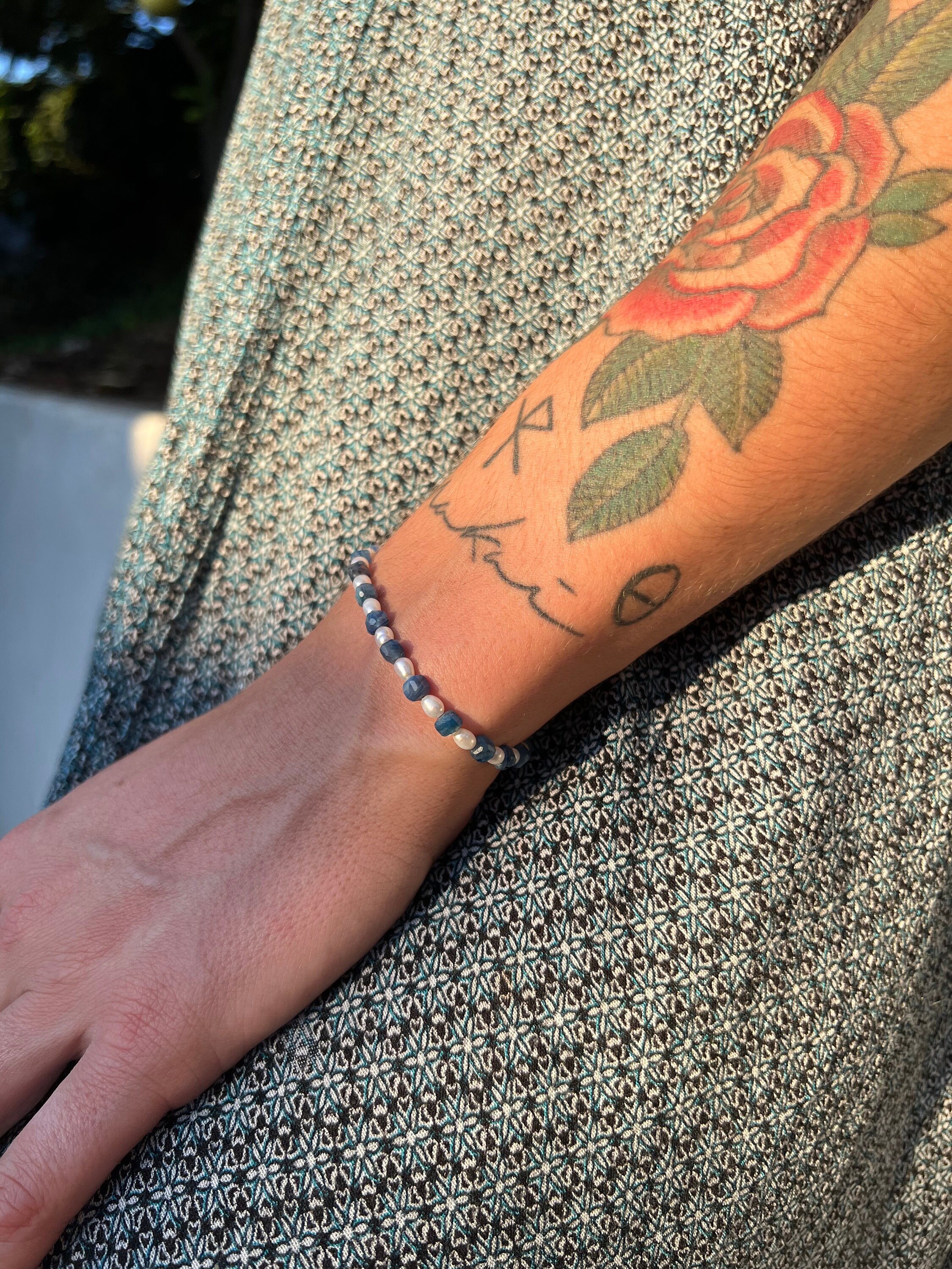 Pearl And Kyanite Bracelet Gemstone Bracelet Bracelet Gift For Etsy Uk